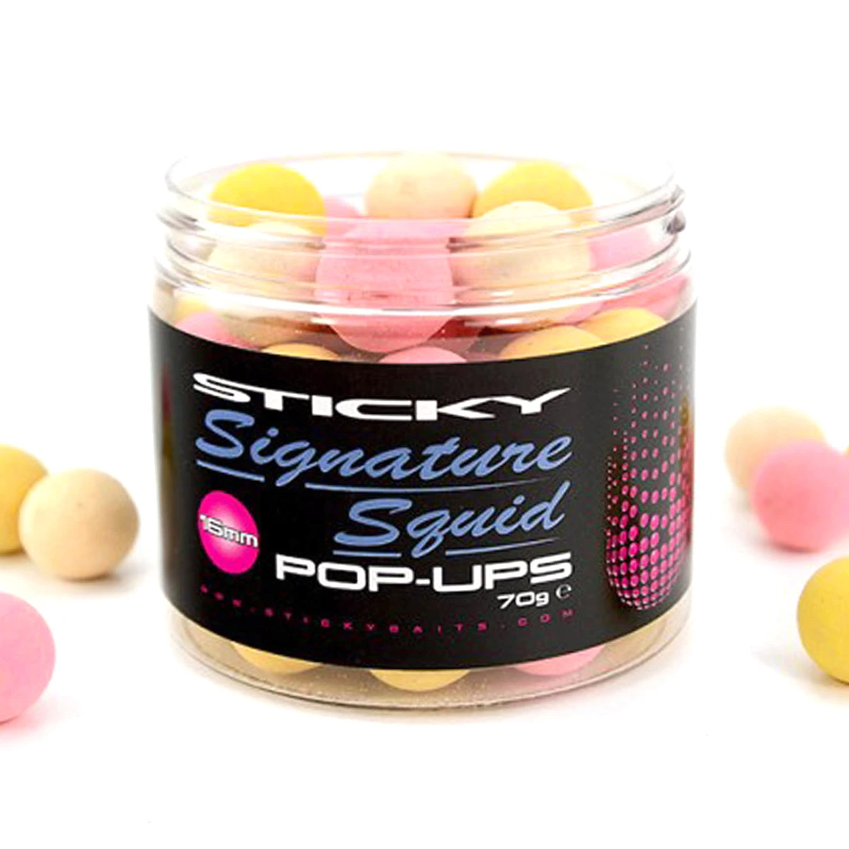 Dit zijn niet zomaar drijvende balletjes met een geurstof, deze Signature Squid Pop-Ups zitten boordevol geweldige en natuurlijke geurstoffen. Zoals de naam al doet vermoeden bevatten deze pop-ups een speciaal inktvis hydrolysaat uit Noorwegen dat exclusief aan Sticky baits geleverd wordt. Verdere geurstoffen in deze pop-ups zijn de altijd goede Squid en Octopus in combinatie met andere vis eiwitten en Green Lipped Mussel poeder. Deze combinatie zet zelfs de meest kieskeurige vis aan het azen.Het is bekend dat de werking van kleuren kan verschillen over verschillende dagen en wateren. Daarom is besloten deze pop-ups in verschillende kleuren per potje aan te bieden, waardoor u in iedere situatie uit de voeten kunt. De pastel kleur is gekozen om de vis in de waan te brengen dat het aas al langer in het water ligt waardoor ze het aas meer vertrouwen.Deze pop-ups zijn zowel single als over een voerbed te vissen. Beide manieren hebben onze consultants veel vis opgeleverd, zowel als de pop-up alleen gevist werd, maar ook als snowman presentatie kwam er veel vis op de kant. De pop-ups worden geleverd in meerder maten en in potjes van 70 gram.